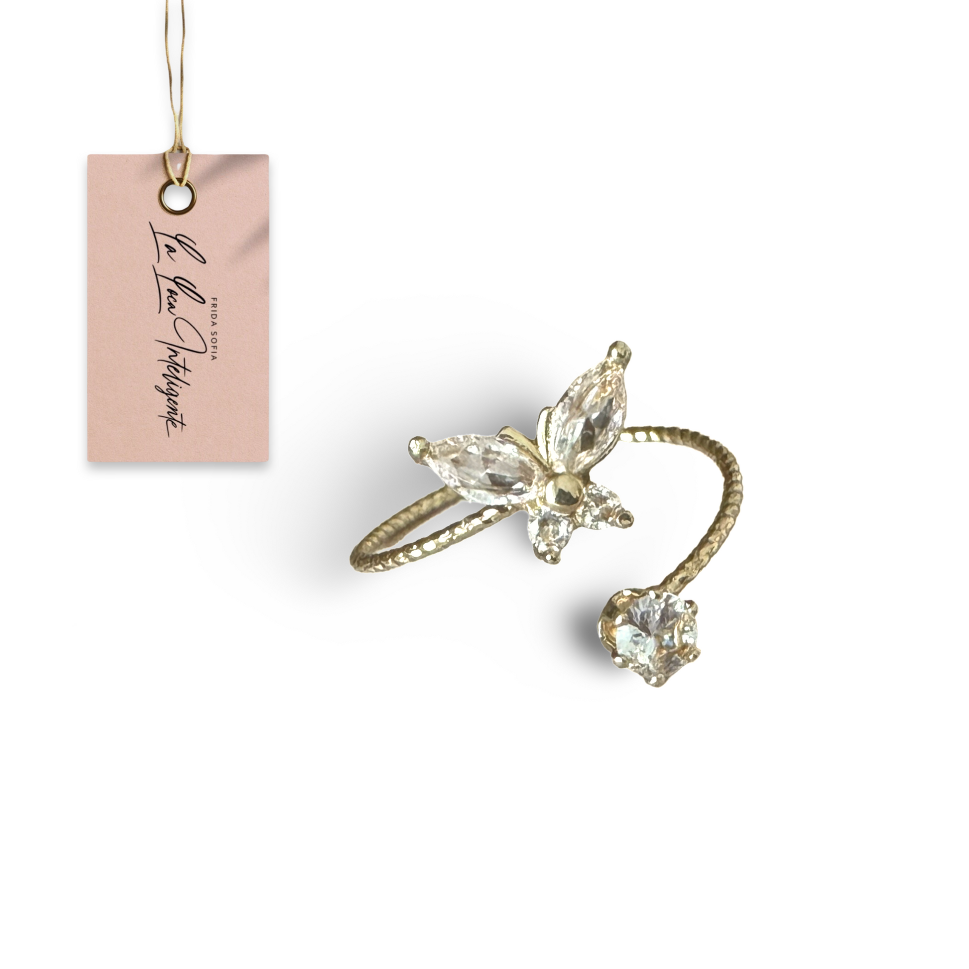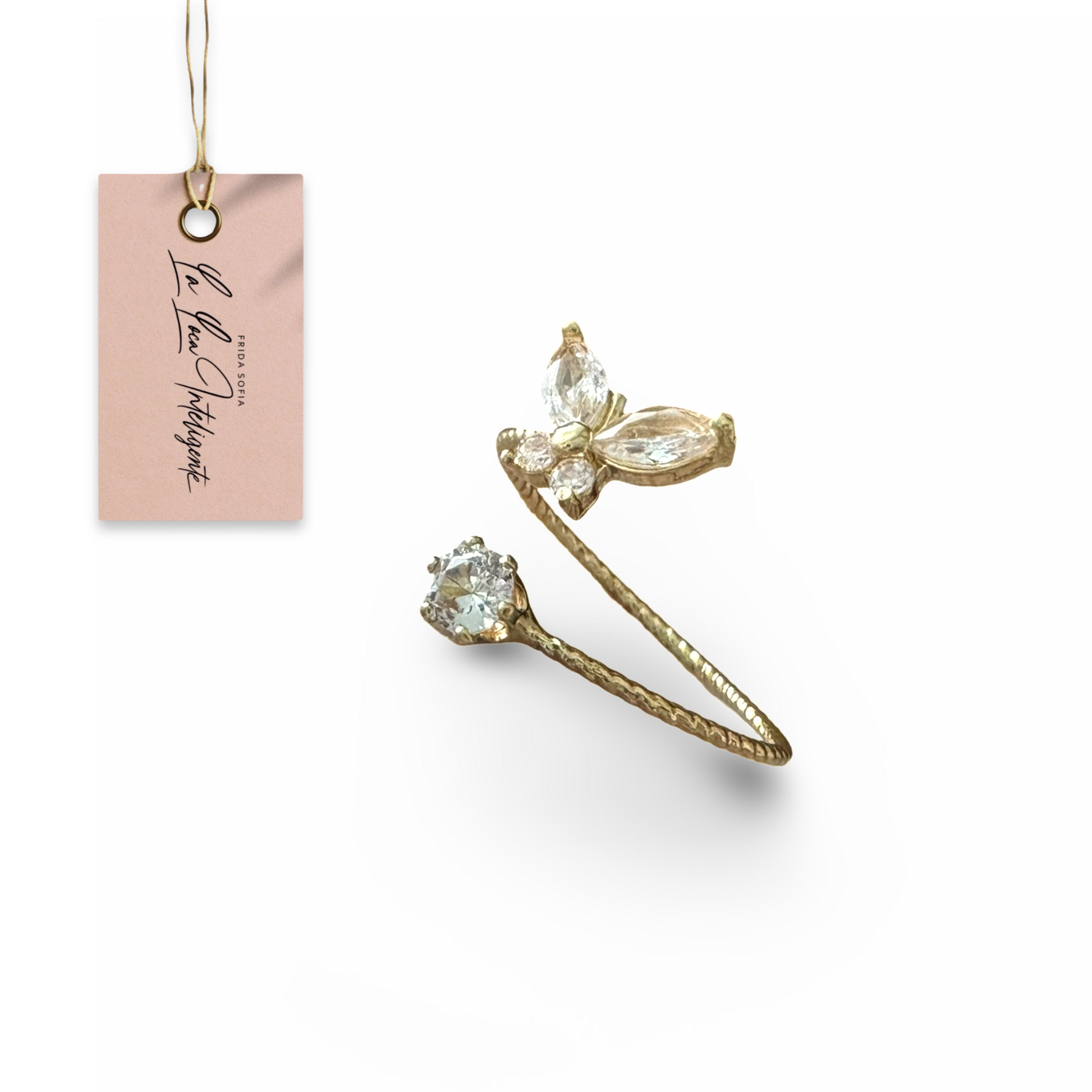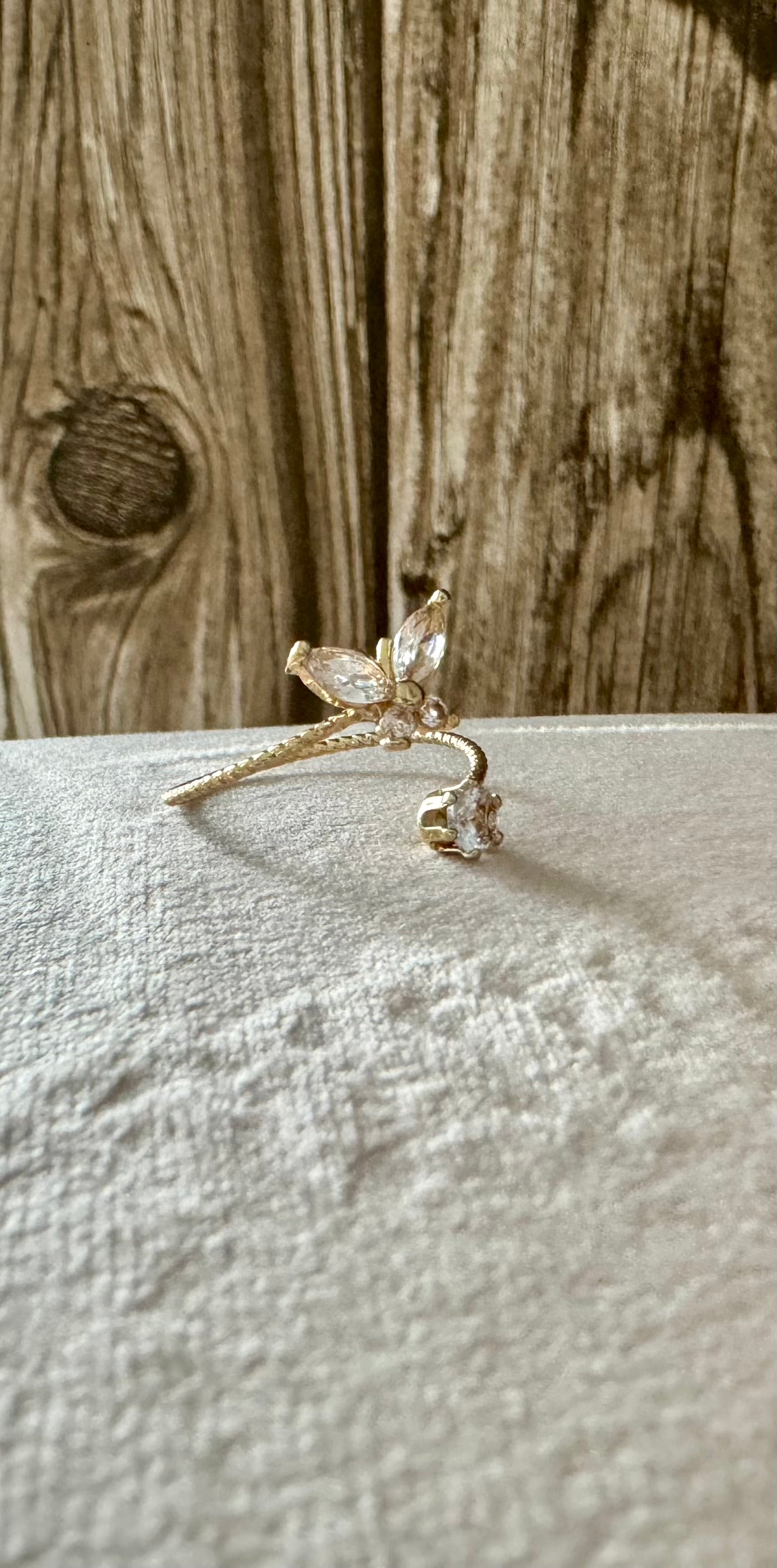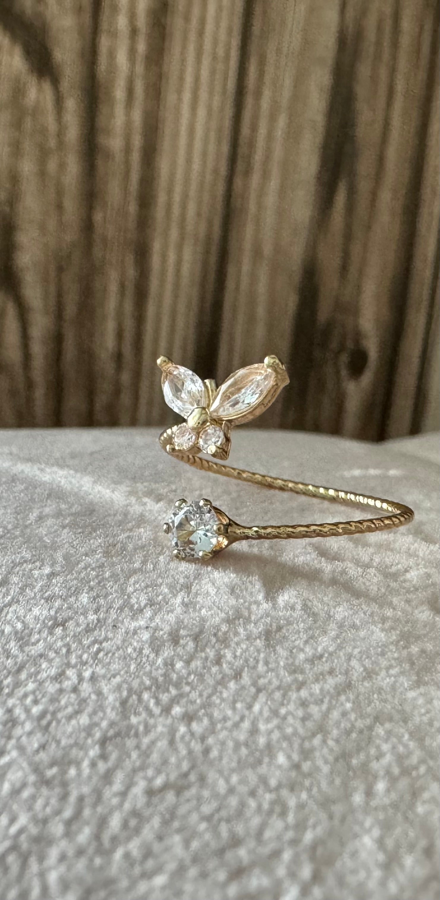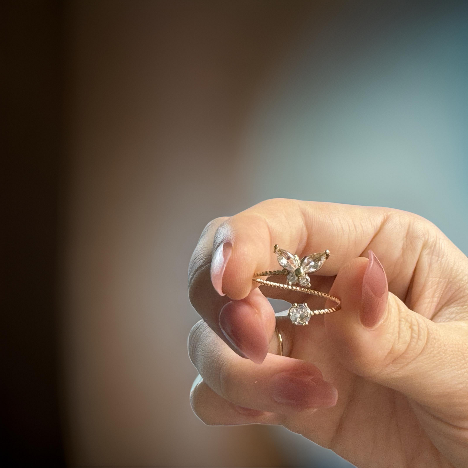 The butterfly golden ring adorned with zirconia is a true representation of nature's charming allure. This piece embodies the soft flutter of a butterfly, symbolizing transformation and growth. The golden band, enriched with sparkling zirconia, adds a touch of luxury, mirroring the precious nectar sought out by these beautiful creatures. This ring is a reminder of the sweetness of life and the beauty of change.